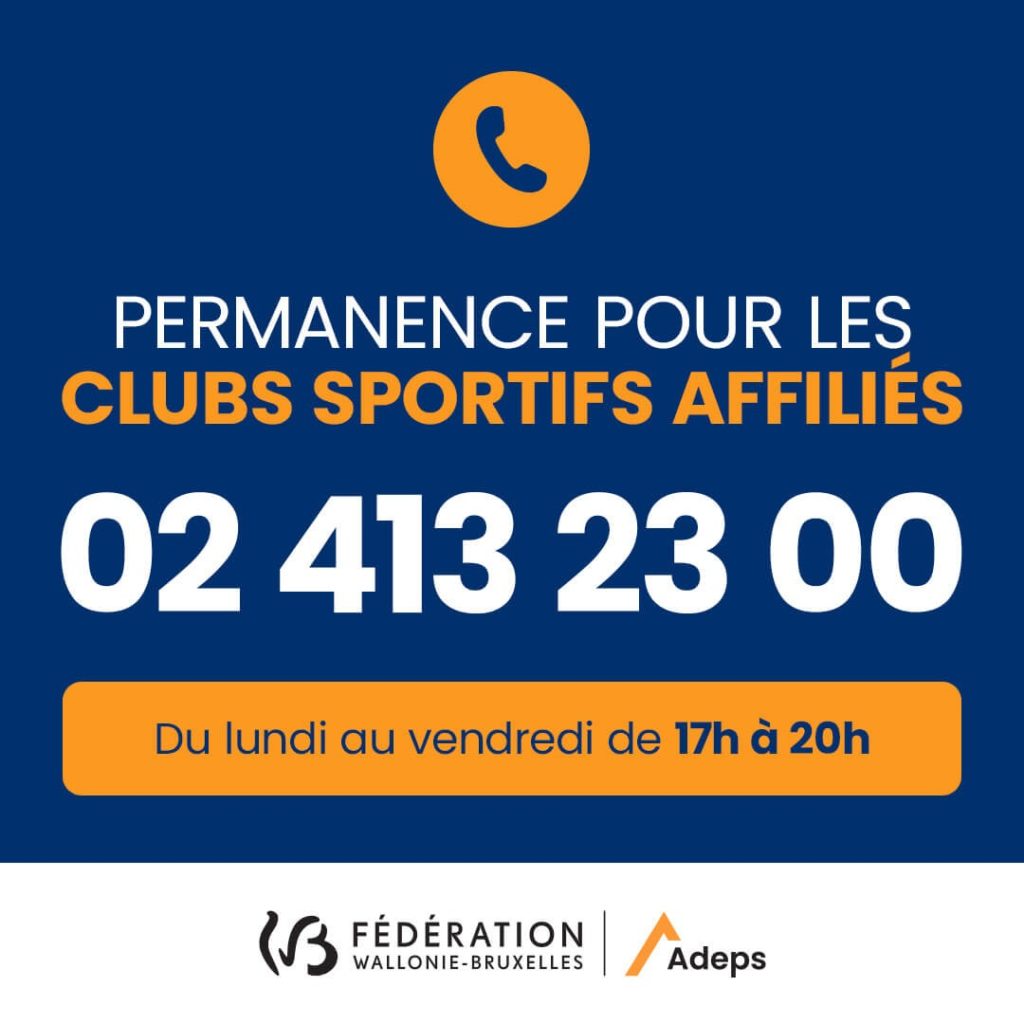 โ๏ธ Le 02/413.23.00 est mis en place pour rรฉpondre aux รฉventuelles questions des diffรฉrents responsables de club en dehors des heures de bureau