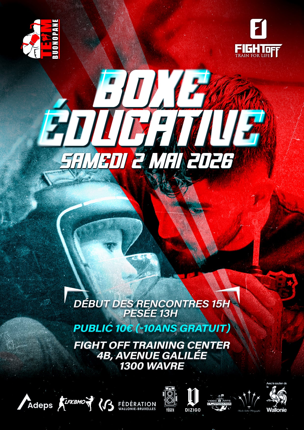 « Tous les Évènements Boxe éducative 2 mai 2026 « Gala C Gala Junior + Gala C » 2 surfaces Pesée 13h Début 15h + Google Agenda+ Exporter vers iCal Détails Date : 2 mai 2026 Catégorie d’Évènement: Boxe éducative Organisateur Fight off Téléphone : 0492550405 E-mail : event@fight-off.com Site Web : https://www.fight-off.com/ Lieu Fight off avenue de gallilée Wavre, Belgique + Google Map Site Web : https://www.fight-off.com/