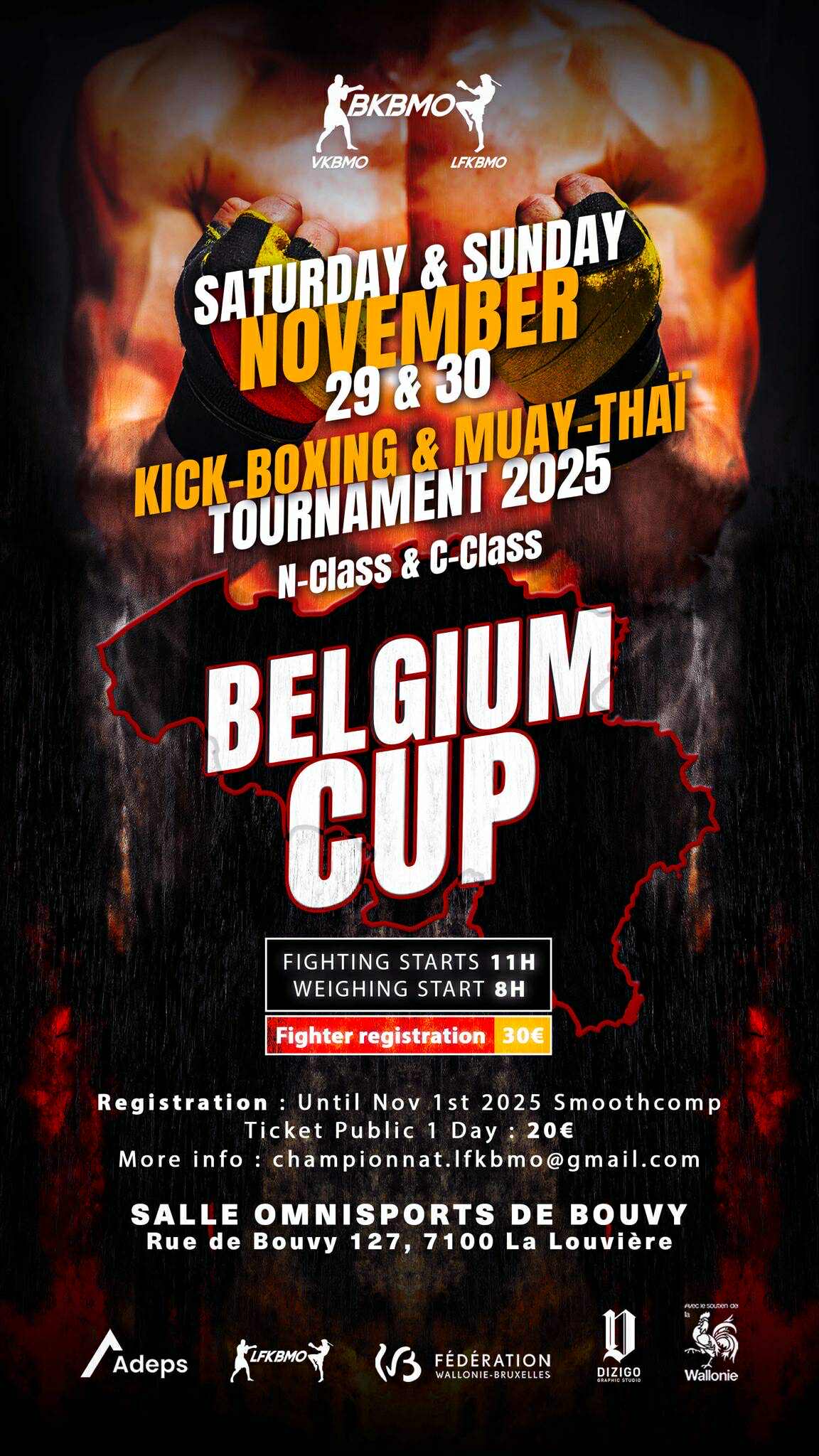 « Tous les Évènements Championnat de Belgique (muaythai + kick-boxing) adulte classe N et classe C 29 novembre 2025 - 30 novembre 2025 « Boxe éducative Gala B » Inscriptions : https://smoothcomp.com/fr/event/24754?fbclid=IwY2xjawNKBXdleHRuA2FlbQIxMQABHuJGrfmBqPY5fmg_RIiI4l_JV4r0YIhpdLFhAc2FqLijIhEJ_ALr-HohuYwY_aem_UaD6s2uVBk2Nbs1T99IjMg + Google Agenda+ Exporter vers iCal Détails Début : 29 novembre 2025 Fin : 30 novembre 2025 Catégorie d’Évènement: Galas Organisateur LFKBMO Téléphone : 0493521635 Lieu La Louvière rue de bouvy, 127 La Louvière, 7100 Belgique + Google Map Téléphone : 0495/483978
