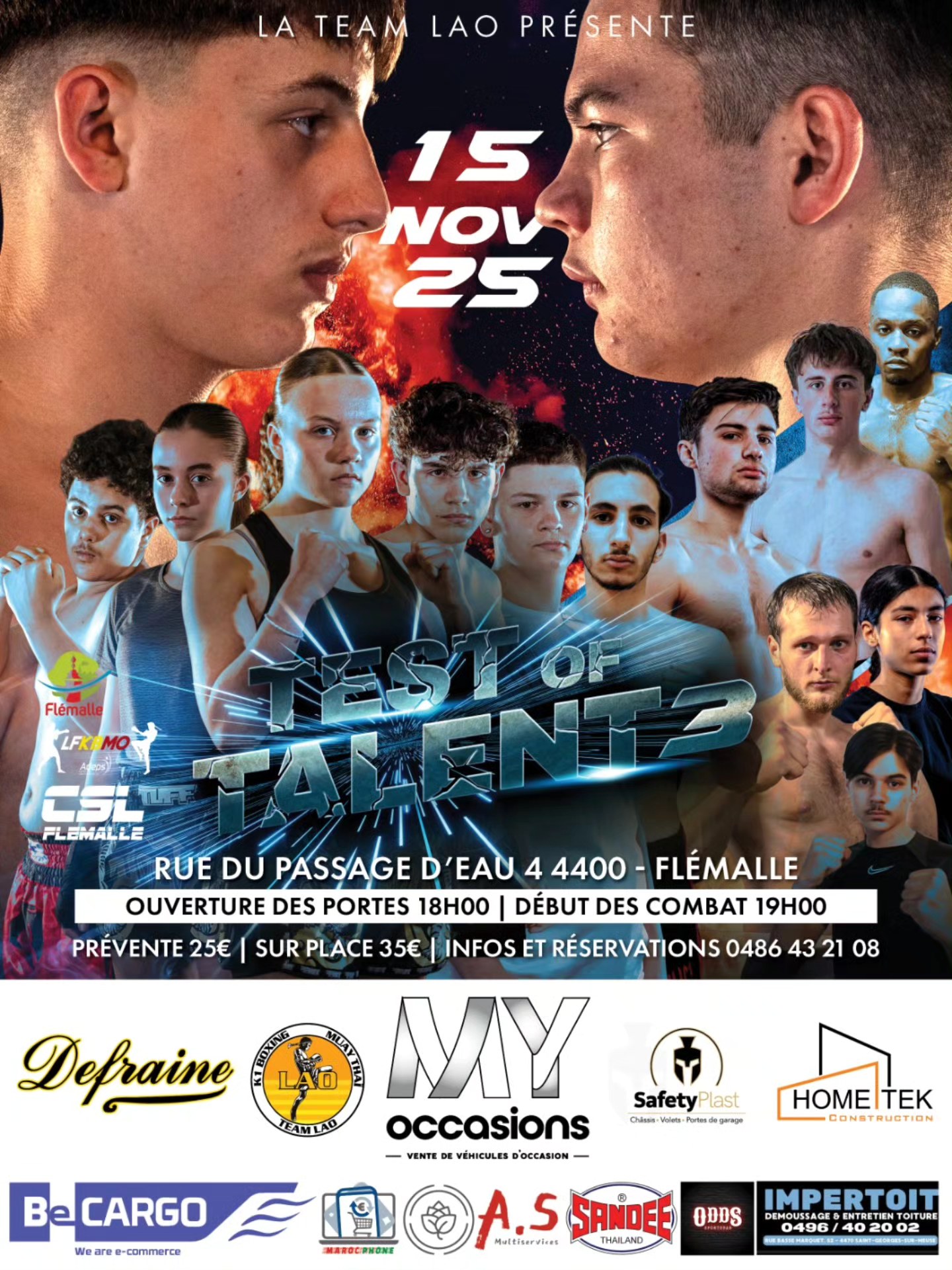 « Tous les Évènements Gala B 15 novembre 2025 « Boxe éducative Open Belgium K1 Youth Championship » Pesée de la veille : Non Heure de la pesée : 17h00 Heure du gala : 19h00 + Google Agenda+ Exporter vers iCal Détails Date : 15 novembre 2025 Catégorie d’Évènement: Galas Organisateur Team LAO Téléphone : 0486432108 Lieu Passage d’eau, Flemalle Passage d'Eau 4 Flemalle, + Google Map